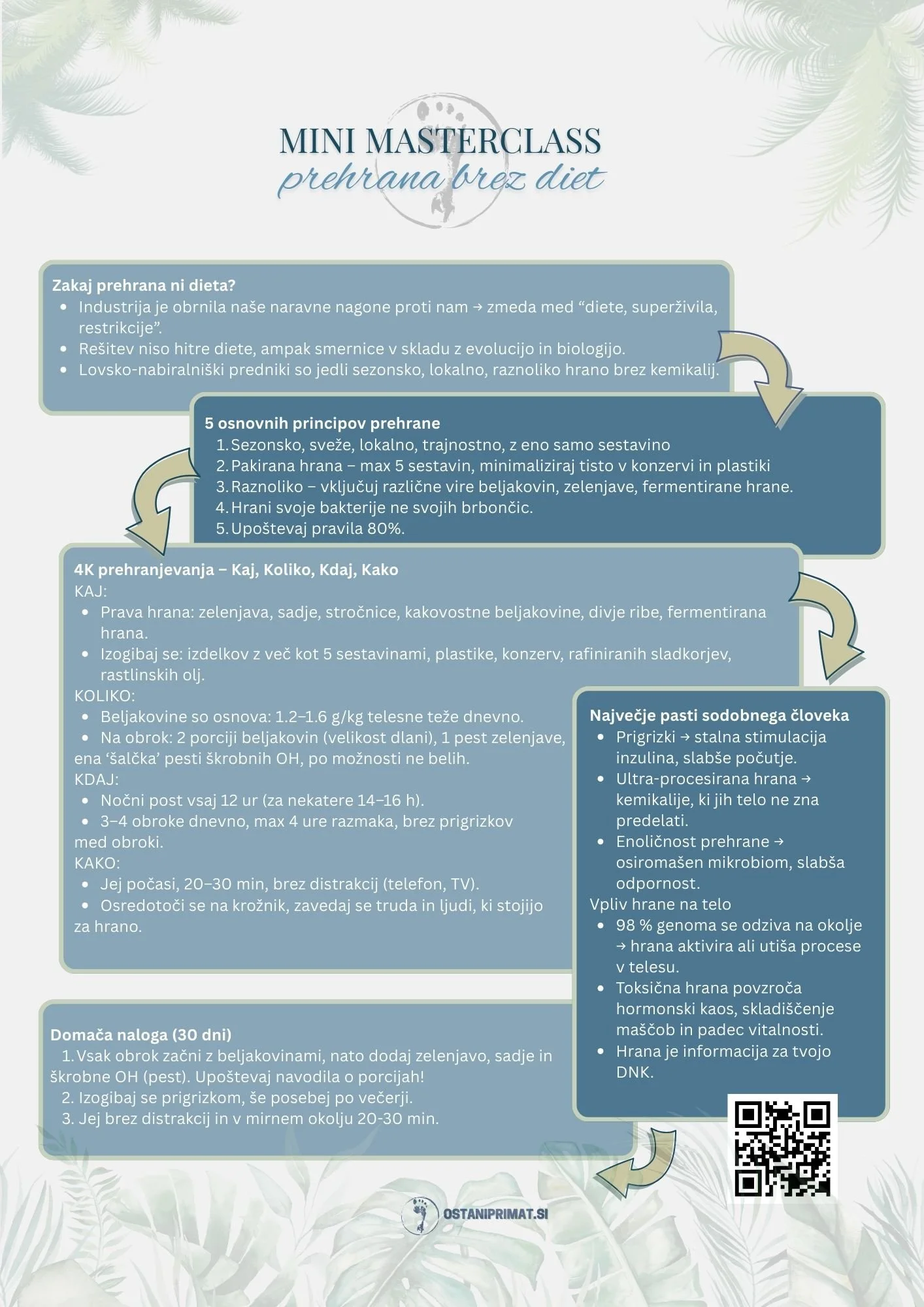 Sodobna prehrana – polna umetnih sestavin, dodatkov, plastike in kemikalij – telesu ne prinaša več informacij, ki jih ta prepoznava že milijone let.